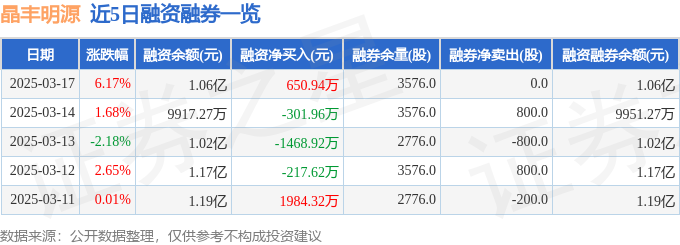 晶丰明源融资融券信息显示,融资方面,当日融资买入2179.19万元,融资偿还1528.25万元,融资净买入650.94万元。融券方面,融券卖出200.0股,融券偿还200.0股,融券余量3576.0股,融券余额36.1万元。融资融券余额1.06亿元。