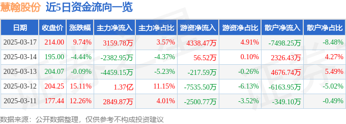 3月17日的资金流向数据方面,主力资金净流入3159.78万元,占总成交额3.57%,游资资金净流入4338.47万元,占总成交额4.91%,散户资金净流出7498.25万元,占总成交额8.48%。