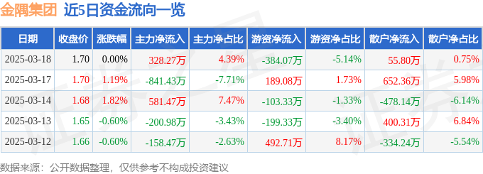 3月18日的资金流向数据方面,主力资金净流入328.27万元,占总成交额4.39%,游资资金净流出384.07万元,占总成交额5.14%,散户资金净流入55.8万元,占总成交额0.75%。