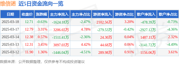 证券之星消息,截至2025年3月18日收盘,维信诺(002387)报收于12.71元,下跌0.63%,换手率3.67%,成交量51.2万手,成交额6.57亿元。
