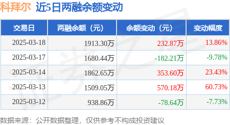证券之星消息,3月18日,科拜尔(920066)融资买入556.78万元,融资偿还323.91万元,融资净买入232.87万元,融资余额1913.3万元,近20个交易日中有13个交易日出现融资净买入。