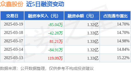 证券之星消息,3月19日,众鑫股份(603091)融资买入312.49万元,融资偿还397.53万元,融资净卖出85.04万元,融资余额1.32亿元,近20个交易日中有11个交易日出现融资净买入。