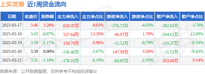 资金流向数据方面,本周上实发展主力资金合计净流入1007.16万元,游资资金合计净流出262.13万元,散户资金合计净流出745.03万元。本周资金流向一览见下表:
