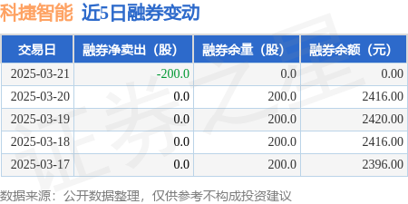 证券之星消息,3月21日,科捷智能(688455)融资买入298.21万元,融资偿还209.21万元,融资净买入89.0万元,融资余额2375.57万元。