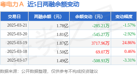 证券之星消息,3月21日,粤电力A(000539)融资买入1077.98万元,融资偿还1337.59万元,融资净卖出259.61万元,融资余额1.77亿元。