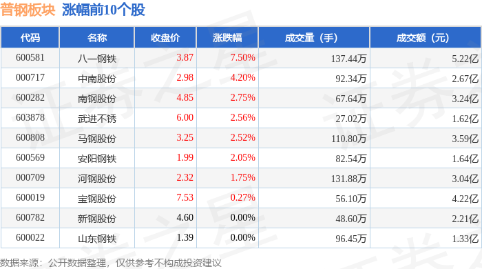 证券之星消息,3月24日普钢板块较上一交易日下跌0.27%,杭钢股份领跌。当日上证指数报收于3370.03,上涨0.15%。深证成指报收于10695.49,上涨0.07%。普钢板块个股涨跌见下表: