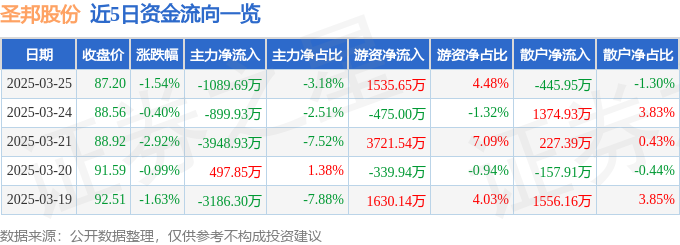 3月25日的资金流向数据方面,主力资金净流出1089.69万元,占总成交额3.18%,游资资金净流入1535.65万元,占总成交额4.48%,散户资金净流出445.95万元,占总成交额1.3%。