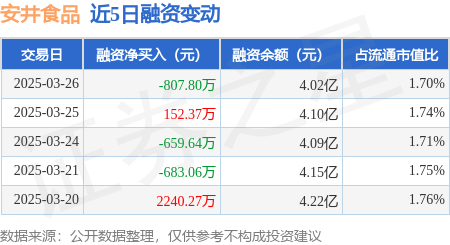 证券之星消息,3月26日,安井食品(603345)融资买入1177.93万元,融资偿还1985.73万元,融资净卖出807.8万元,融资余额4.02亿元。