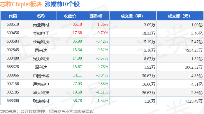 证券之星消息,3月28日芯粒Chiplet板块较上一交易日下跌1.43%,正业科技领跌。当日上证指数报收于3351.31,下跌0.67%。深证成指报收于10607.33,下跌0.57%。芯粒Chiplet板块个股涨跌见下表: