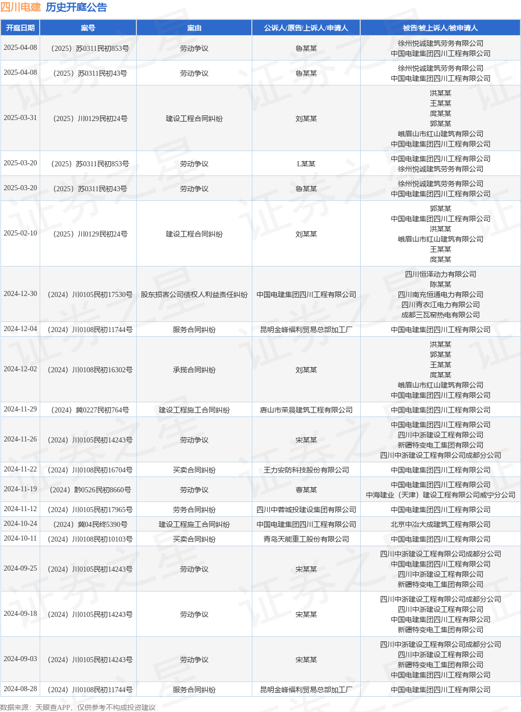 证券之星消息,根据天眼查APP显示,近日公布了一则中国电建集团四川工程有限公司作为被告/被上诉人的开庭公告,详细内容如下: