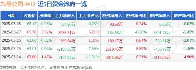 证券之星消息,截至2025年3月28日收盘,九号公司(689009)报收于65.15元,下跌0.23%,换手率1.04%,成交量5.74万手,成交额3.72亿元。
