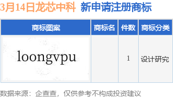今年以来龙芯中科技术股份有限公司新申请注册商标6件,截止目前公司共持有注册商标649件,另有43件商标尚在注册申请中。