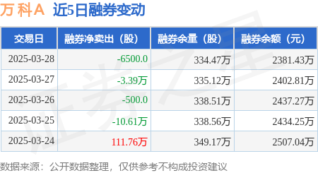 证券之星消息,3月28日,万 科A(000002)融资买入4428.37万元,融资偿还5690.73万元,融资净卖出1262.37万元,融资余额41.08亿元。