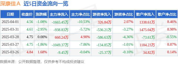4月1日的资金流向数据方面,主力资金净流出1665.45万元,占总成交额10.53%,游资资金净流入326.84万元,占总成交额2.07%,散户资金净流入1338.61万元,占总成交额8.46%。