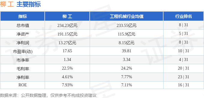 该股主要指标及行业内排名如下: