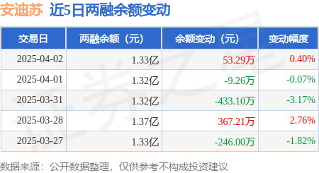 证券之星消息,4月2日,安迪苏(600299)融资买入421.89万元,融资偿还373.02万元,融资净买入48.86万元,融资余额1.32亿元,近20个交易日中有13个交易日出现融资净买入。