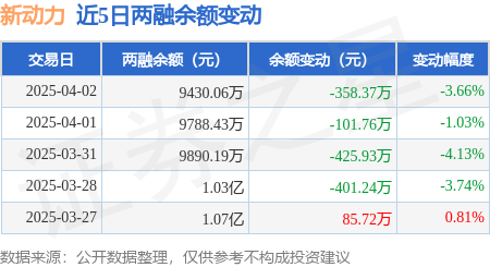 证券之星消息,4月2日,新动力(300152)融资买入110.8万元,融资偿还469.18万元,融资净卖出358.37万元,融资余额9430.06万元。