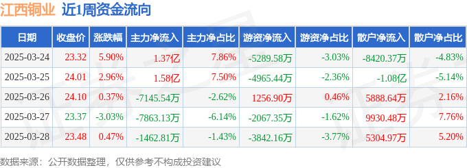 沪深股通持股方面,截止2025年3月28日收盘,江西铜业沪股通持股数为1.29亿股,占流通股比为623.0%。