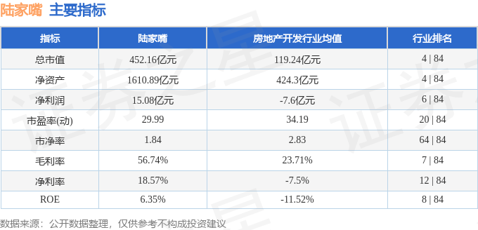 陆家嘴(600663)主营业务:房地产投资开发运营商。 陆家嘴2024年三季报显示,公司主营收入69.09亿元,同比上升14.5%;归母净利润10.55亿元,同比下降3.76%;扣非净利润10.44亿元,同比上升1.97%;其中2024年第三季度,公司单季度主营收入23.11亿元,同比上升12.61%;单季度归母净利润4.99亿元,同比上升27.87%;单季度扣非净利润4.86亿元,同比上升21.92%;负债率69.74%,投资收益1.32亿元,财务费用10.55亿元,毛利率56.74%。