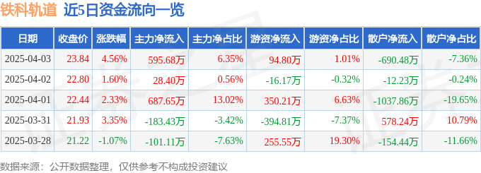 4月3日的资金流向数据方面,主力资金净流入595.68万元,占总成交额6.35%,游资资金净流入94.8万元,占总成交额1.01%,散户资金净流出690.48万元,占总成交额7.36%。