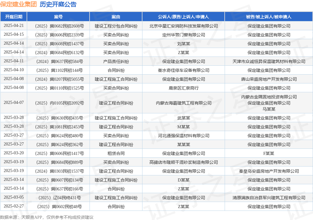 证券之星消息,根据天眼查APP显示,近日公布了一则保定建业集团有限公司作为被告/被上诉人的开庭公告,详细内容如下: