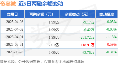证券之星消息,4月3日,帝奥微(688381)融资买入683.1万元,融资偿还696.1万元,融资净卖出13.0万元,融资余额1.99亿元。