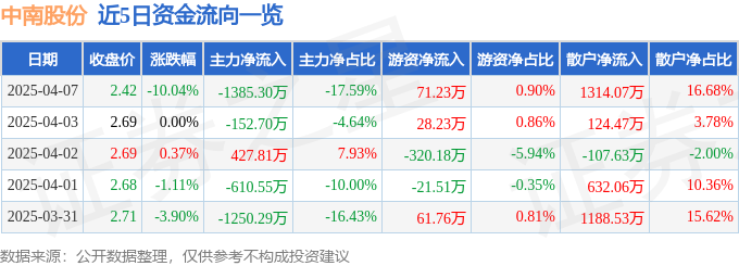 证券之星4月7日盘中消息,13点8分中南股份(000717)触及跌停板。目前价格2.42,下跌10.04%。其所属行业普钢目前下跌。该股为央企改革,国企改革,钢铁概念热股。