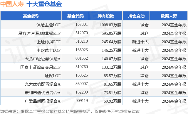 重仓中国人寿的前十大公募基金请见下表: