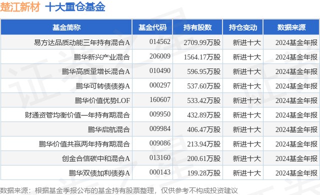 重仓楚江新材的前十大公募基金请见下表: