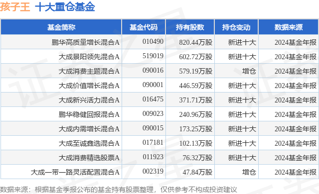 根据2024基金年报公募基金重仓股数据,重仓该股的公募基金共12家,其中持有数量最多的公募基金为鹏华基金的鹏华高质量增长混合A。鹏华高质量增长混合A目前规模为9.51亿元,最新净值0.7452(4月3日),较上一交易日下跌2.17%,近一年上涨16.22%。该公募基金现任基金经理为胡颖。胡颖在任的基金产品包括:鹏华稳健回报混合A,管理时间为2021年11月16日至今,期间收益率为-9.41%;