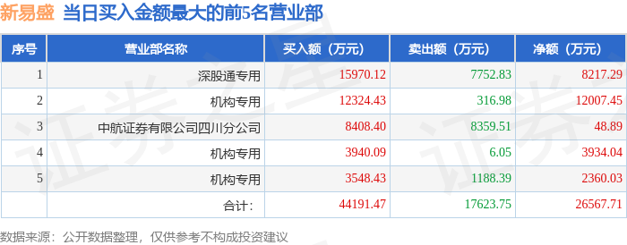 证券小知识:龙虎榜是交易所披露的竞价交易公开信息,现身龙虎榜的个股都是当日最为活跃的个股,是投资者日常重点关注的数据。交易所公布当日买入金额和卖出金额前五名的席位,其中一些席位代表特殊意义,如机构专用席位是指基金专用席位、券商自营专用席位、社保专用席位、券商理财专用席位、保险机构专用席位、保险机构租用席位、QFII专用席位等机构投资者买卖证券的专用通道和席位。深股通专用、沪股通专用为北向资金的交易席位。从龙虎榜数据可以发现和研究机构、游资和散户的资金动向。一些营业部席位经常上榜,市场知名度较高,投资者整理代表散户、游资、量化等不同资金的营业部席位。