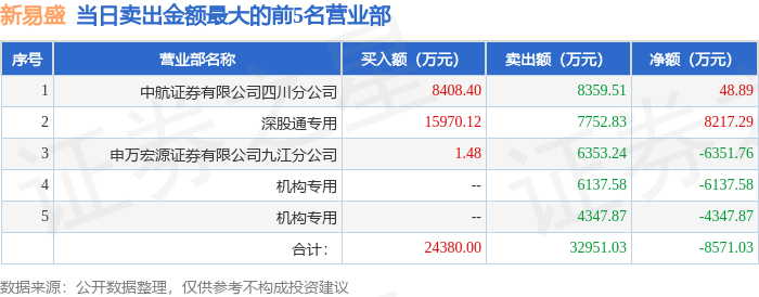 证券之星消息,沪深交易所2025年4月7日公布的交易公开信息显示,新易盛(300502)因日跌幅达到15%的前5只证券登上龙虎榜。此次是近5个交易日内第1次上榜。