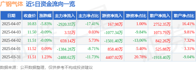 证券之星消息,截至2025年4月7日收盘,广钢气体(688548)报收于10.83元,下跌5.83%,换手率2.24%,成交量15.24万手,成交额1.68亿元。