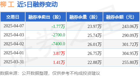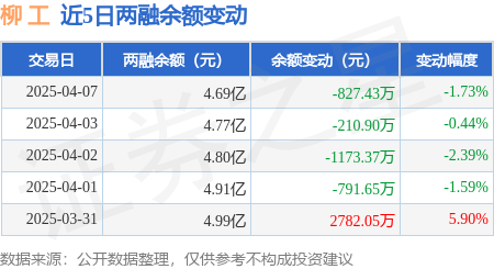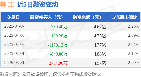 证券之星消息,4月7日,柳 工(000528)融资买入2896.82万元,融资偿还3677.22万元,融资净卖出780.4万元,融资余额4.67亿元,近20个交易日中有11个交易日出现融资净买入。