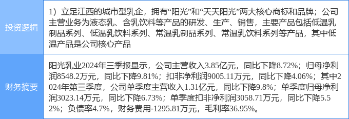 证券之星消息,阳光乳业4月8日涨停收盘,收盘价13.57元。该股于10点3分涨停,3次打开涨停,截止收盘封单资金为1143.39万元,占其流通市值1.09%。