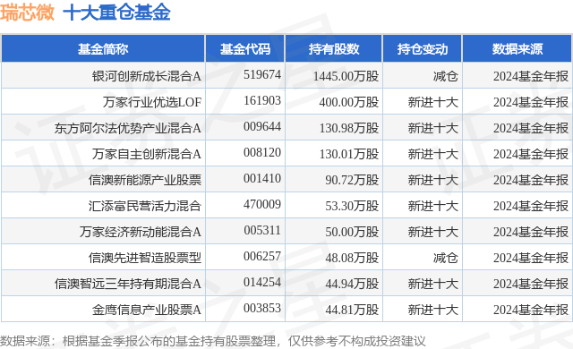 重仓瑞芯微的前十大公募基金请见下表:
