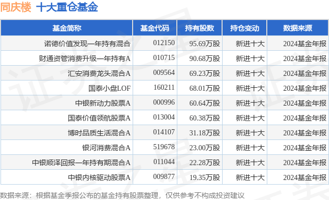 根据2024基金年报公募基金重仓股数据,重仓该股的公募基金共18家,其中持有数量最多的公募基金为诺德基金的诺德价值发现一年持有混合。诺德价值发现一年持有混合目前规模为4.41亿元,最新净值0.6371(4月7日),较上一交易日下跌12.08%,近一年下跌0.2%。该公募基金现任基金经理为罗世锋。罗世锋在任的基金产品包括:诺德价值优势混合,管理时间为2014年11月25日至今,期间收益率为169.95%;诺德周期策略混合,管理时间为2015年6月20日至今,期间收益率为52.32%;