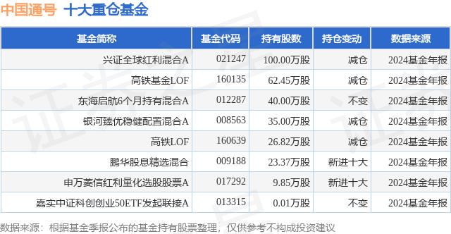 根据2024基金年报公募基金重仓股数据,重仓该股的公募基金共8家,其中持有数量最多的公募基金为兴证全球基金的兴证全球红利混合A。兴证全球红利混合A目前规模为1.12亿元,最新净值0.9861(4月7日),较上一交易日下跌6.65%。该公募基金现任基金经理为张晓峰。张晓峰在任的基金产品包括:兴全中证800六个月持有指数A,管理时间为2021年5月24日至今,期间收益率为12.71%;