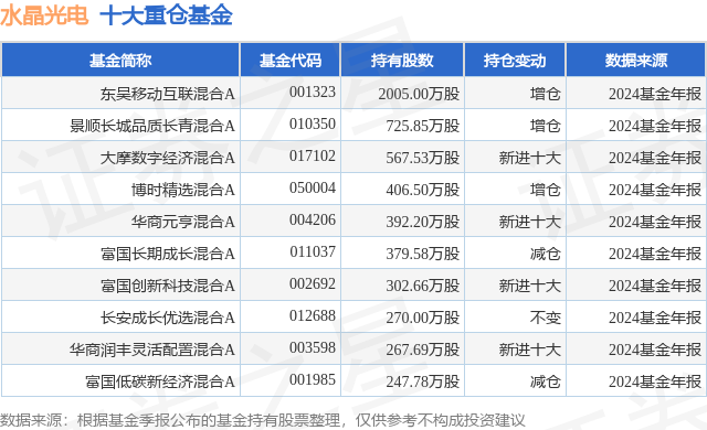 重仓水晶光电的前十大公募基金请见下表: