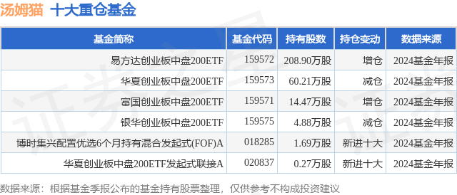 根据2024基金年报公募基金重仓股数据,重仓该股的公募基金共6家,其中持有数量最多的公募基金为易方达基金的易方达创业板中盘200ETF。易方达创业板中盘200ETF目前规模为9.89亿元,最新净值0.9823(4月7日),较上一交易日下跌17.01%,近一年上涨7.93%。该公募基金现任基金经理为李树建。李树建在任的基金产品包括:易方达中证消费50ETF,管理时间为2023年9月9日至今,期间收益率为-5.08%;易方达上证科创板成长ETF联接发起式A,管理时间为2024年1月4日至今,期间收益率为21.39%;易方达中证石化产业ETF联接发起式A,管理时间为2024年1月5日至今,期间收益率为-1.31%。
