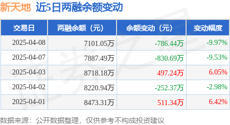 证券之星消息,4月8日,新天地(301277)融资买入1594.03万元,融资偿还2380.47万元,融资净卖出786.44万元,融资余额7101.05万元。