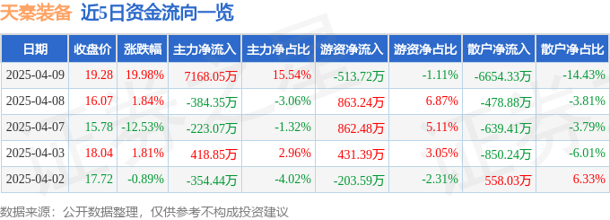 证券之星消息,天秦装备4月9日涨停收盘,收盘价19.28元。该股于10点29分涨停,2次打开涨停,截止收盘封单资金为2510.0万元,占其流通市值1.13%。