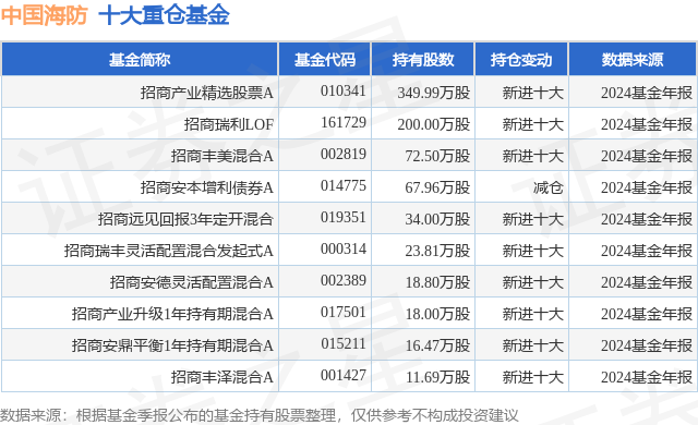 重仓中国海防的前十大公募基金请见下表: