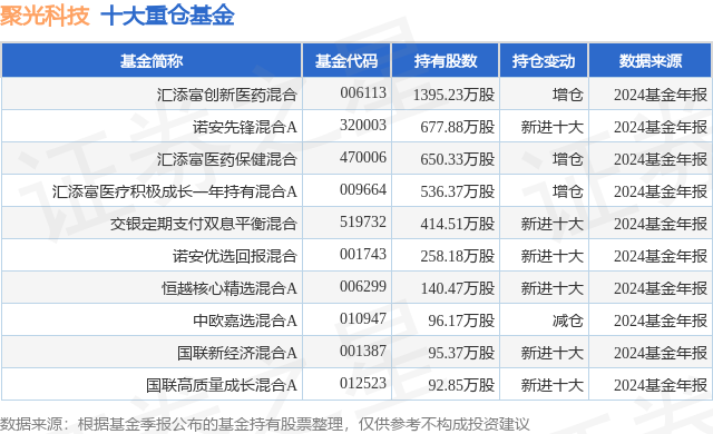 重仓聚光科技的前十大公募基金请见下表: