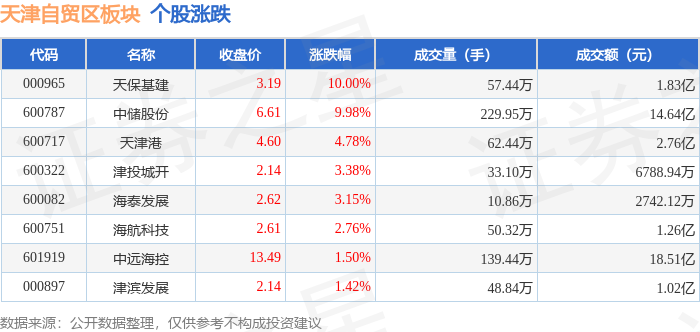 证券之星消息,4月9日天津自贸区板块较上一交易日上涨2.43%,天保基建领涨。当日上证指数报收于3186.81,上涨1.31%。深证成指报收于9539.89,上涨1.22%。天津自贸区板块个股涨跌见下表: