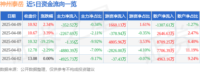 证券之星消息,截至2025年4月9日收盘,神州泰岳(300002)报收于10.92元,上涨2.34%,换手率5.33%,成交量97.13万手,成交额10.29亿元。