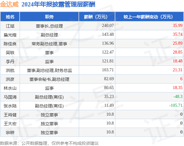 证券之星消息,金达威发布2024年年报,数据显示:公司主营收入32.4亿元,同比增4.43%。归母净利润为3.42亿元,同比增23.59%。扣非净利润为3.39亿元,同比增20.8%。当年公司员工总数2123人,同比减0.14%。人均薪酬22.82万元(注:"人均薪酬"根据定期报告中"应付职工薪酬"附注的本期增加值 / 员工总数计算而来),同比增5.01%。人均创收152.62万元,同比增4.58%。人均创利17.29万元,同比增33.08%。其中管理层薪酬总额为1110.96万元,同比上一年增3.41%,薪酬最高的为董事长,总经理江斌,薪酬240.07万元。