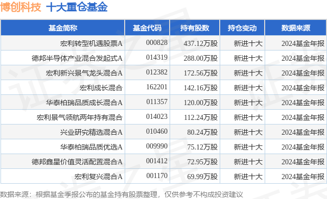 根据2024基金年报公募基金重仓股数据,重仓该股的公募基金共32家,其中持有数量最多的公募基金为宏利基金的宏利转型机遇股票A。宏利转型机遇股票A目前规模为37.32亿元,最新净值2.108(4月9日),较上一交易日上涨1.01%,近一年下跌0.19%。该公募基金现任基金经理为孟杰。孟杰在任的基金产品包括:宏利睿智稳健混合A,管理时间为2020年9月7日至今,期间收益率为29.17%;宏利行业精选混合A,管理时间为2021年12月30日至今,期间收益率为-25.08%;宏利睿智成长混合A,管理时间为2024年5月14日至今,期间收益率为-9.75%;宏利半导体产业混合发起A,管理时间为2024年7月23日至今,期间收益率为9.98%。