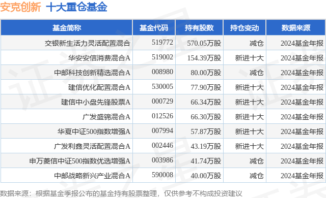 根据2024基金年报公募基金重仓股数据,重仓该股的公募基金共77家,其中持有数量最多的公募基金为交银施罗德基金的交银新生活力灵活配置混合。交银新生活力灵活配置混合目前规模为59.07亿元,最新净值1.968(4月9日),较上一交易日上涨1.08%,近一年下跌3.77%。该公募基金现任基金经理为杨浩。
