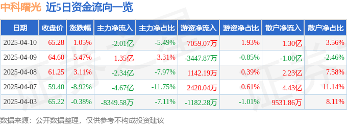 4月10日的资金流向数据方面,主力资金净流出2.01亿元,占总成交额5.49%,游资资金净流入7059.07万元,占总成交额1.93%,散户资金净流入1.3亿元,占总成交额3.56%。
